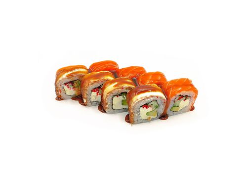 Норі, рис, вершковий сир, авокадо, огірок, ікра тобіко, вугор, лосось, соус унагі
