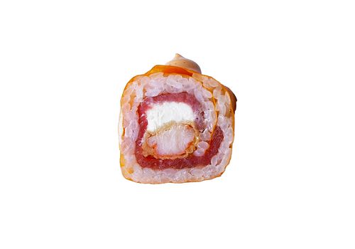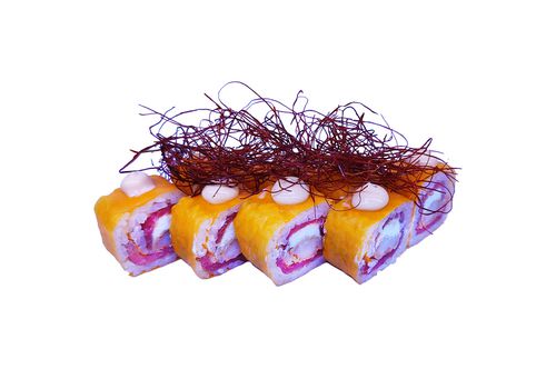 Соєвий папір, Рис, Тунець, Крем сир, Креветка панко, Соус спайсі, перець чилі