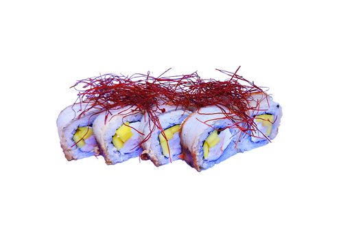 Норі, Рис, Крем сир, креветка, Манго, Вугор, Унагі соус, Нитки чилі