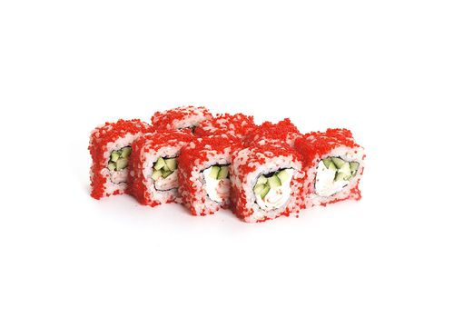 рис, вершковий сир, креветка тигрова, огірок, ікра тобіко червона