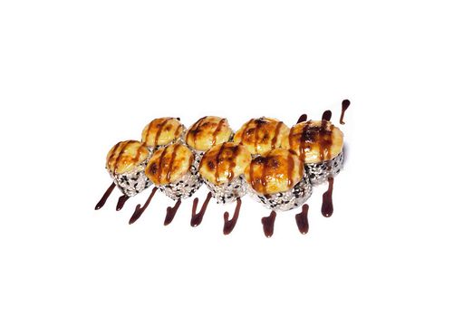 рис, норі, огірок, вершковий сир, копчений лосось, кунжут, унагі соус, сирний соус